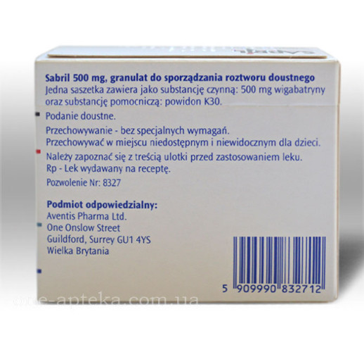 Сабрил 500 мг ціна, відгуки Сабрил призначається пацієнтам, які страждають епілепсією, частковими нападами та синдромом Веста, в поєднанні з іншими протиепілептичними засобами.