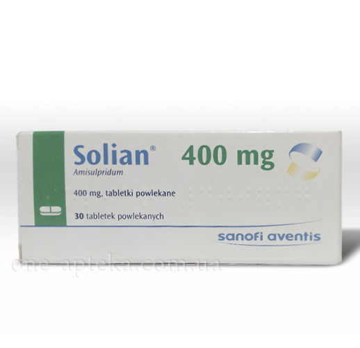 Соліан має міжнародну назву - амісульприд. Цей препарат належить до групи антипсихотичних засобів. Діючою речовиною у препараті є амісульприд. На сьогоднішній день препарат доступний у формі покритих оболонкою таблеток. Препарат приймається перорально. Антипсихотичний ефект досягається завдяки наступному механізму фармакологічної дії. Діюча речовина вибірково зв'язується з підтипами рецепторів D2/D3 дофамінергічних. При цьому відсутня речовина, яка має афінітет до підтипів D5, D4 і D1. Купити Соліан можна через нашого менеджера, оформивши замовлення за телефоном, ціна на препарат Соліан в нашому сервісі з доставки ліків є найнижчою в Україні.