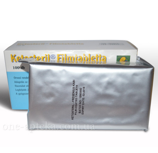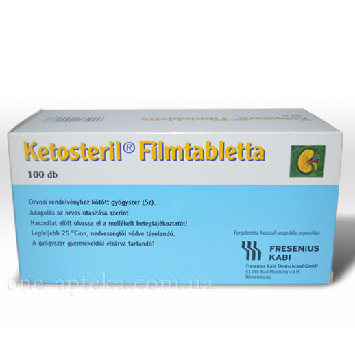 Медикаментозное средство Кетостерил направлено на реабилитацию обмена веществ, который был сорван из-за маленького количества поступающих в организм аминокислот на фоне нарушенного функционирования почек. Также средство влияет на выработку белка, понижает токсическоие действие побочных продуктов белкового обмена, улучшает состояние пациентов с хронически нарушенным функционирование почек. В состав медикамента Кетостерила входят жизненно важные аминокислоты, без них наш организм неправильно функционирует. Купить Кетостерил вы можете заполнив форму заказа на нашем сайте, а цена препарата Кетостерил в нашем сервисе по доставке лекарств самая низкая в Украине.