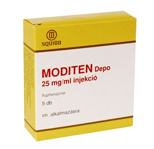Это препарат, предназначенный для внутримышечного введения (масляного типа). Действующее вещество – флуфеназин. Используется для устранения тревожности и раздражительности. Применяется для предотвращения галлюцинаций и бреда. Действие лекарства заключается в блокаде дофаминовых D2- рецепторов мезолимбической и мезокортикальной систем.